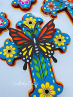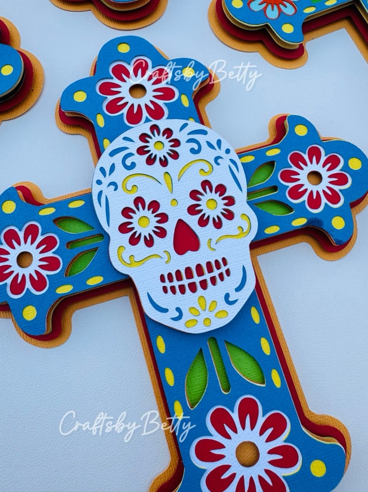 INCLUYE: 4 diseños de cruces: mariposa, calavera de azúcar, sagrado corazón y floral.